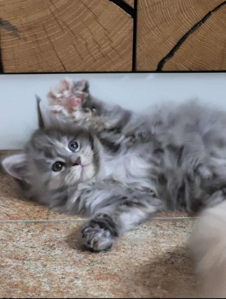 Unser Maine Coon Kitten Autumn Breeze ist mal wieder eins der Mädels, das ich gerne behalten würde! Sie ist groß für ein Weibchen, typvoll, trotzdem niedlich mit einem jetzt schon unverwechselbaren Ausdruck! Ich bin gespannt, wie sich das Fräulein in den nächsten Wochen entwickelt!
