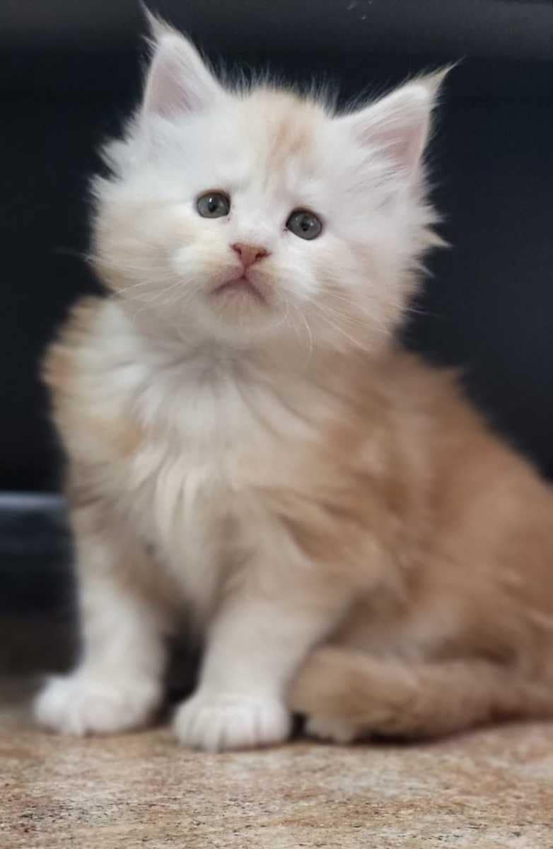 Unser Maine Coon Kater Snowball kann seine Herkunft nicht verleugnen, er ist Kopie seines tollen Papas Theo (Hushpaws‘ Torino). Er hat das schöne, sehr helle Silber seines Papas geerbt, hat ein markantes Profil und eine heute schon dicke Schnauze. Er wiegt mit gerade mal 12 Tagen schon weit überdurchschnittliche 450 Gramm, und auch wenn die Größe für mich nicht das Wichtigste bei Coonies ist, ist es trotzdem einfach eine Freude, ihn so schön wachsen und gedeihen zu sehen! Er ist ein aufgeweckter, lieber Kerl und er fängt jetzt schon in typischer Maine Coon Manier an zu reden und zu maunzen. Er wird einmal ein beeindruckender, schöner Kater werden, da bin ich mir sicher!